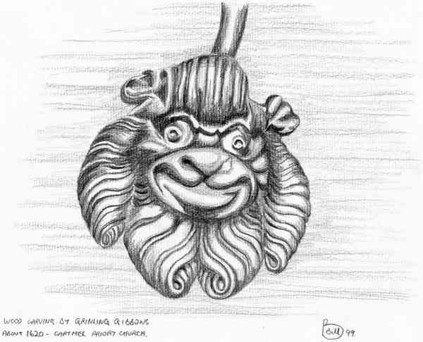 One afternoon when we were driving back to base after a few days in that that patch of "gods own country", the English Lake District, Hilary (SWMBO) who was thumbing through a guide book, mentioned that there was a church coming up that had a Saxon cross in the graveyard. Interesting as that was, I discovered inside the church some curious brackets that supported the hinged seats of the pews. They were carved out of oak by a master carver. I get the impression when looking at this sketch which is a bit laboured, that old Grinling knocked off the actual carving quicker than it took me to do the sketch.