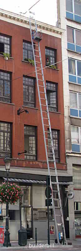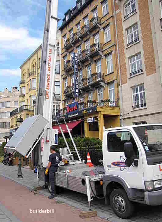 This one was a lot larger telescopic rig mounted on a small truck. I watched the guys loading sheets of plasterboard into the upper floor window. The platform was self leveling. Here the operator is packing up and I would say that it seemed fast and easy to use. Again there did not seem to be too much concern for safety of the passers by. If you didn't find exactly what you are looking for try this search tool that will search the site and the web. "What can be added to the happiness of a man who is in health, out of debt, and has a clear conscience? "When we build, let us think that we build for ever."John Ruskin 1819-1900 |
